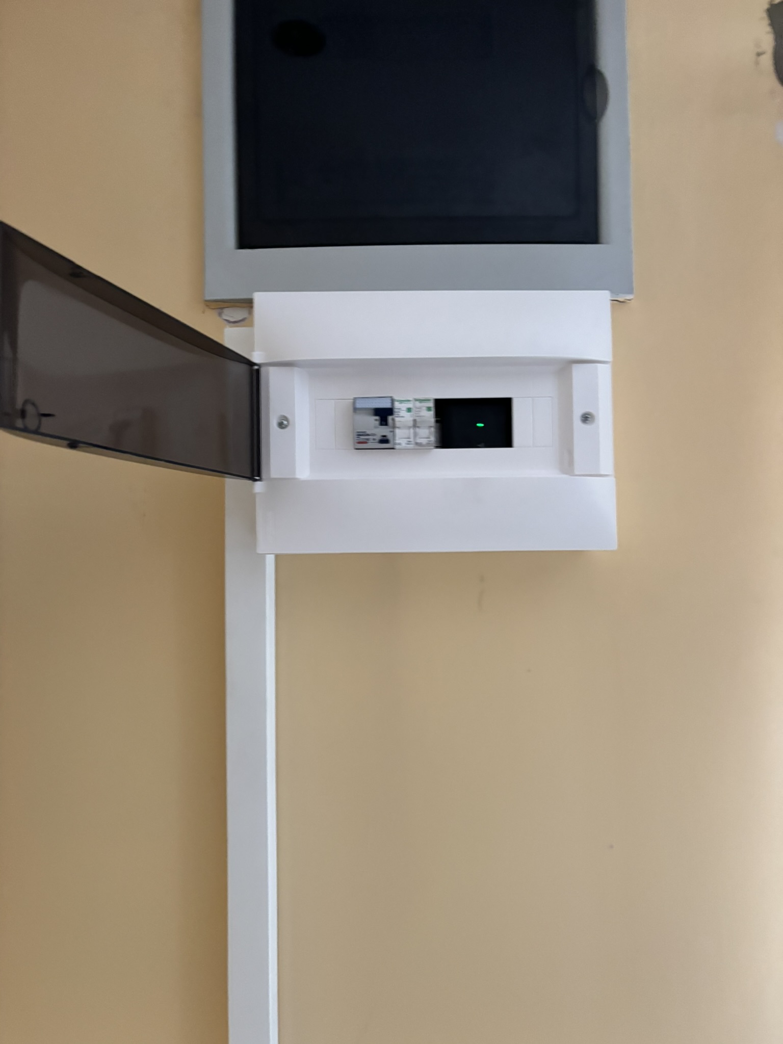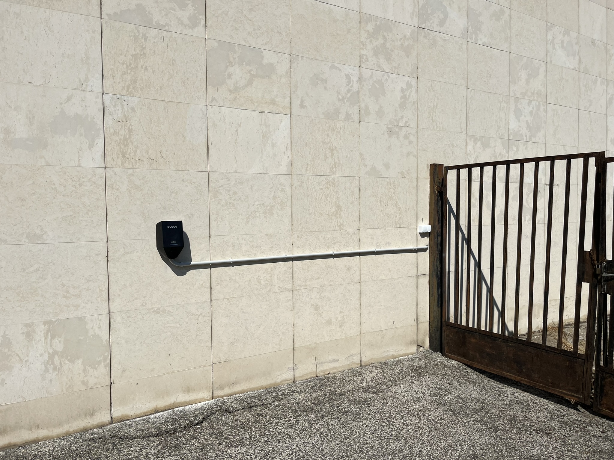 A társasház parkolójába telepített egyfázisú Elecq Home 7,4 kW-os 4G-s töltő tökéletesen kommunikál a tőle 40 méterre elhelyezett Elecq Power Monitorral.