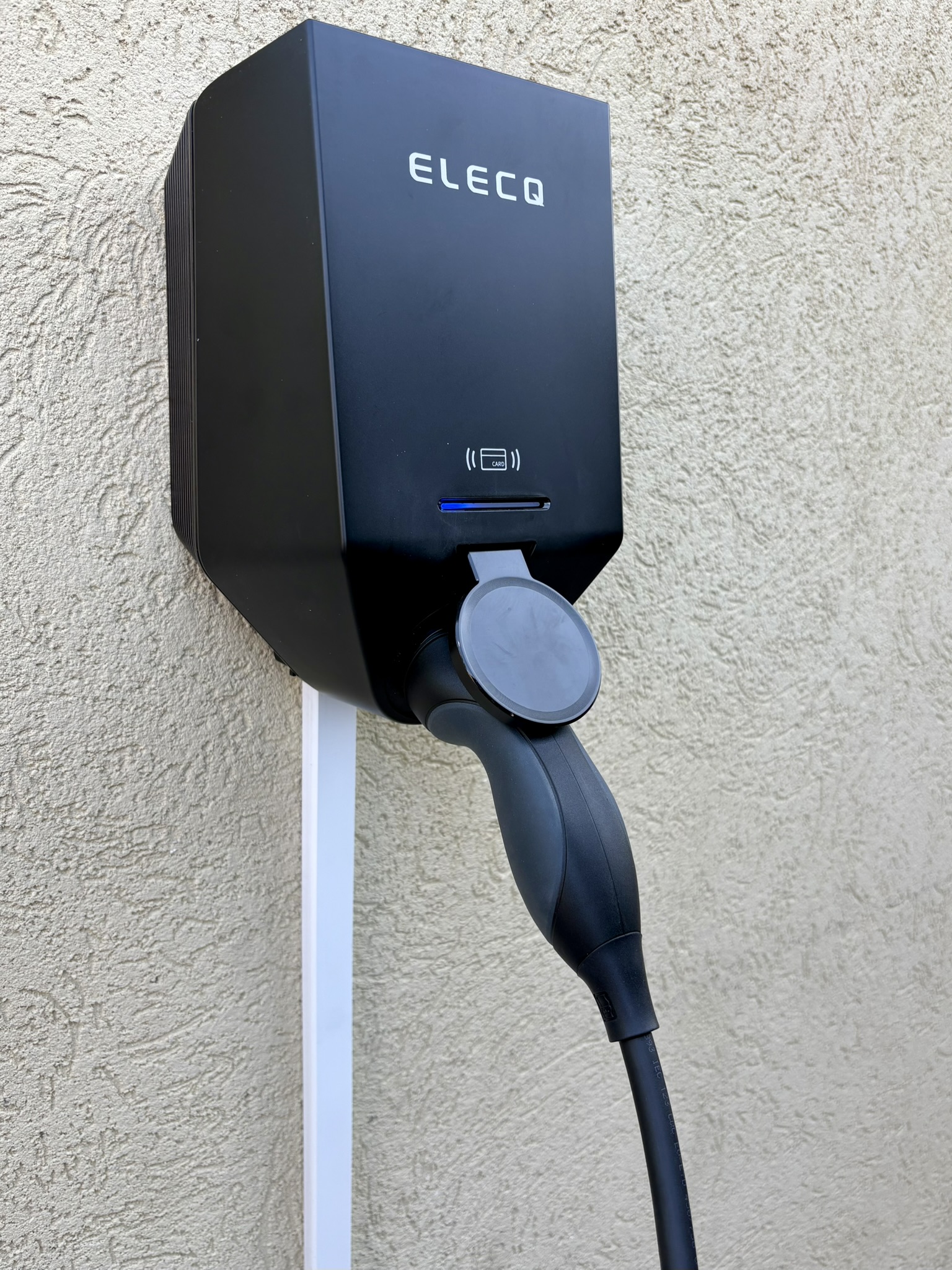 Az Elecq Home töltő Type 2 aljzattal szerelt, így a töltőkábel a készülék oldalán zárható, illetéktelenek nem tudják eltávolítani. A fix kábeles töltőkkel szemben ez a megoldás több szempontból is előnyös: egy esetleges kábelsérülés esetén a töltő üzemképes marad, csupán egy másik kábelt kell csatlakoztatni. A rögzített kábeles típusoknál ezzel szemben meg kell várni a szerelőt, amíg a hibát kijavítja és a töltő újra használhatóvá válik.