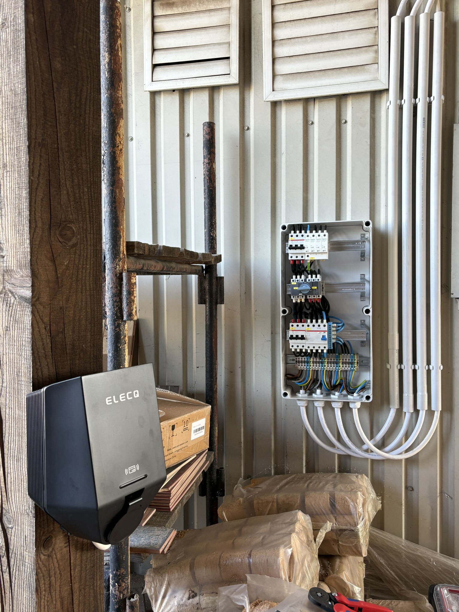 Felkészülve a jövőre, Budakalászon egy családi háznál telepítettünk 1 db 22 kW-os Elecq Home töltőt, amely jelenleg 1 fázison működik, de a kábelezés már 3 fázisra lett tervezve és kialakítva. Amint a tulajdonos bővíti az ingatlan elektromos hálózatát, lehetősége nyílik a gyorsabb, 3 fázisú töltésre is.